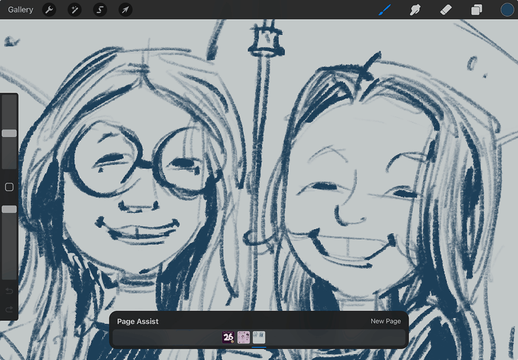 It’s referenced from a photograph on Pinterest. The brush is rough and semi-transparent at lower pressures, but there is something about that lack of transfer that makes it look organic. And because it can feel pretty jittery at times, that randomness forces a kind of urgency to get the idea out quickly, necessitating more economical, simplistic strokes, which affects the style of the drawing in a pleasant way.